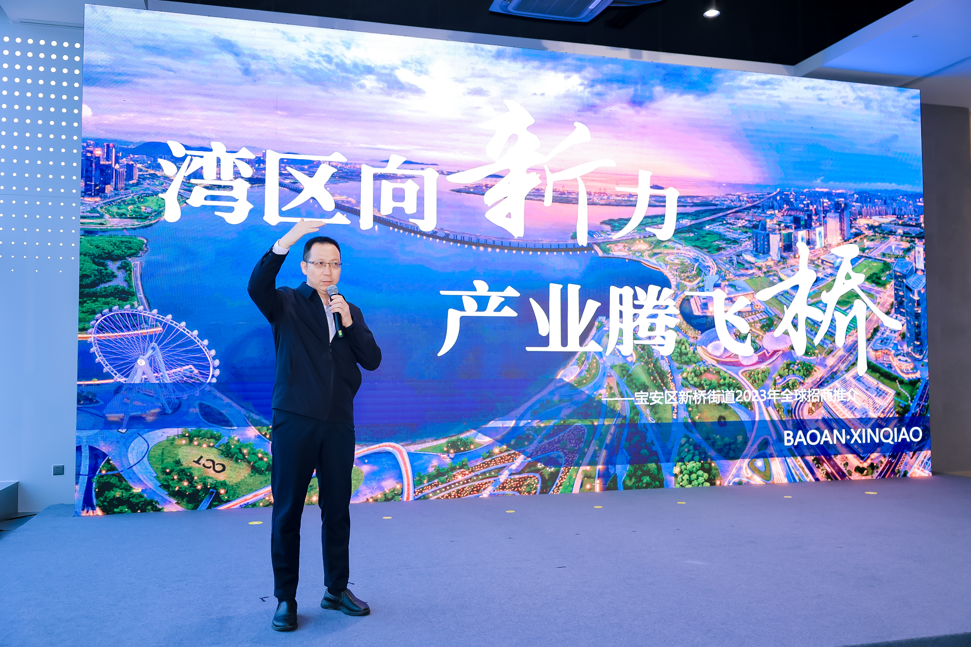 4月25日下午,一场以“湾区向新力 产业腾飞桥”为主题的产业腾飞专项行动在新桥街道拉开序幕,释放招商强磁场,孕育投资新商机。宝安区副区长朱云出席活动。集团副总经理杨伟贤现场向参会企业推介新桥东先进制造产业园。