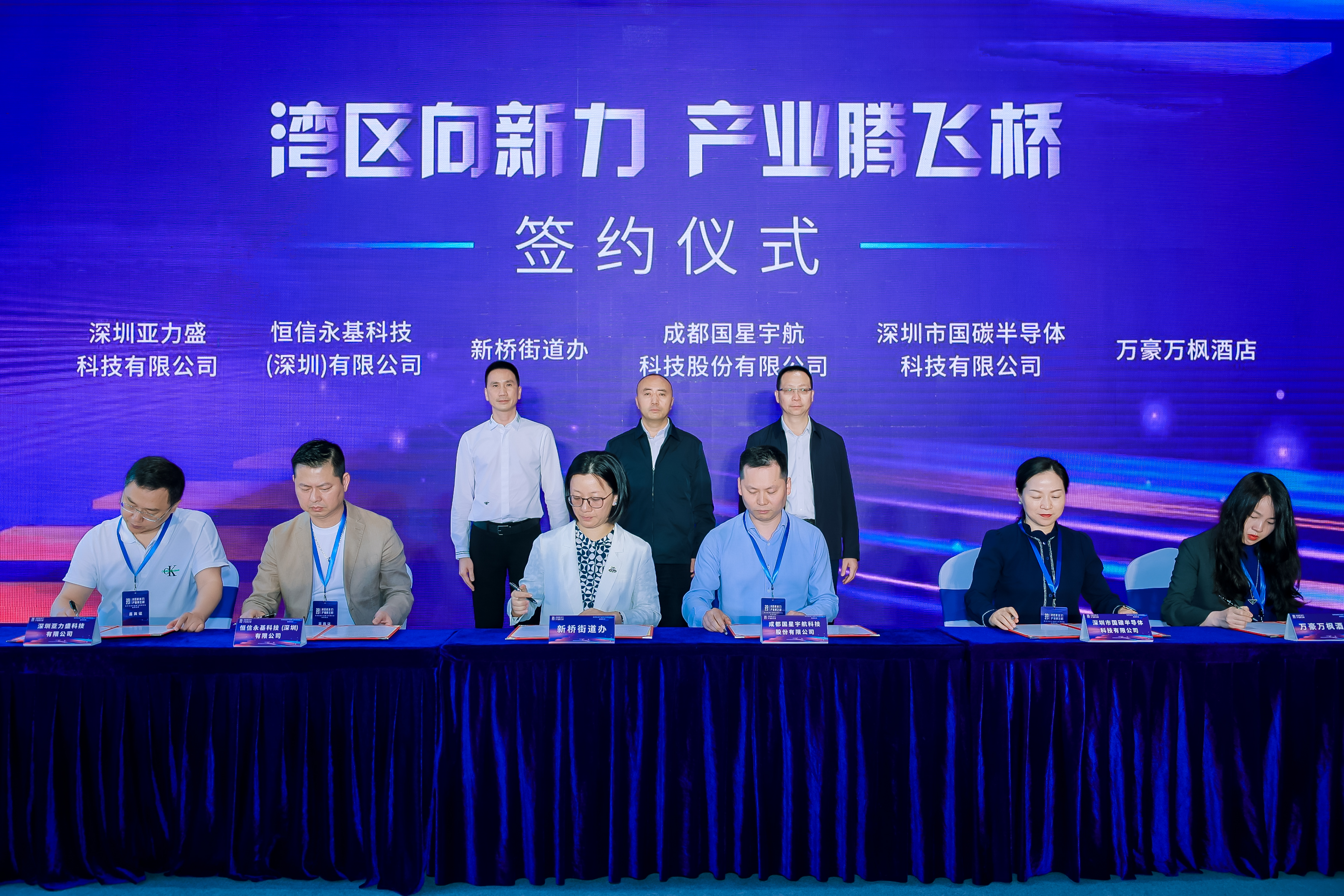 筑好“招商巢”,引来“新凤凰”。当天,国星宇航、恒信永基、国碳半导体、亚力盛科技、万豪万枫酒店等5家企业代表与新桥街道签署了发展战略框架协议,将携手共同开启“湾区向新力,产业腾飞桥”的美好未来。